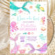 Pastel mermaid tails girl birthday invitation pool