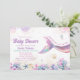 Inspired by shimmering coral reefs and dreamy seaside sunsets, this mermaid invitation blends blush pink, lavender mist, aqua tones, and delicate gold accents. The flowing rainbow tail creates a magical focal point, setting the scene for a sweet and elegant under-the-sea celebration for your little mermaid.