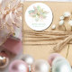 This round sticker features a pastel poinsettia with pink berries and gold glitter highlights. It is so elegant and modern for a Merry Christmas. You can customise your message and name.
