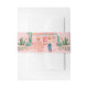This belly band features painted artwork of Mexican town with a couple walking towards a building. Colors include green, pink, yellow, blue white and coral.