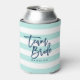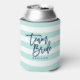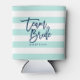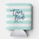 Pastel Mint and White Stripes Blue Team Bride Can Cooler