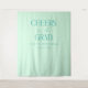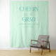 Create an elegant yet cheerful photo backdrop for your graduation party. Design features "Cheers to the Grad" in modern elegant typography. Shown in mint green and turquoise, but all colours are editable by you. Personalise the template to add your graduate's name and year. © Kimbellished, LLC