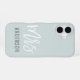 After the wedding, show off your new last name with this sleek and stylish case -- perfect for the honeymoon! Personalised bride design features "Mrs. [lastname]" in modern white and grey typography on a subtle pastel mint green background. Use the field provided to personalise with your new last name.