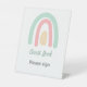 Pastel Minty Rainbow Baby Shower Guest Book Pedestal Sign