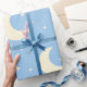 Wrap your gifts in sweet celestial charm with this pastel moon and stars wrapping paper. Featuring soft cream crescent moons and twinkling stars on a calming blue background, this design is perfect for baby showers, newborn gifts, kids birthdays, and gender-neutral nursery celebrations. The gentle night sky pattern adds a cozy, dreamy touch that makes every present feel extra special. Ideal for baby boys, baby girls, and anyone who loves cute celestial themes.