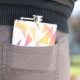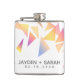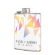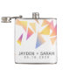 Commemorate your special day with this wedding flask, which features multi-coloured triangle confetti set on a white background. Add newlyweds' names and wedding date. Makes a great party favour for guests, too!