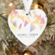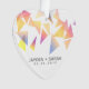 Celebrate your special day with this commemorative wedding ornament, which features multi-coloured triangle confetti set on a white background. Add newlyweds' names and wedding date. Reverse shows identical design. Use as is, or replace with a photo of the couple. This design is optimised for the circle, oval, heart, and shirt shapes.