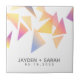 Commemorate your special day with this ceramic wedding tile, which features multi-coloured triangle confetti set on a white background. Add newlyweds' names and wedding date. Makes a great party favour for guests, too!