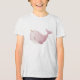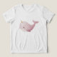 This watercolor illustration features an adorable pastel narwhal with a soft rounded shape, tiny golden horn, and a gentle smiling expression. Painted in blush pink and creamy white tones, the design includes subtle speckles and smooth watercolor textures that create a calm and dreamy ocean atmosphere.