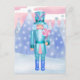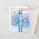 A jubilant nutcracker, bearing an enchanted gift of the winter season, dons regal attire amidst a pastel-coloured frost-kissed forest. Original illustration by Noël Snow