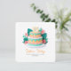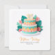 Surrounding the cake, layered botanical elements unfold like a paper garden: lush teal leaves and soft coral flowers add depth, texture, and a sense of quiet movement, giving the artwork a beautifully dimensional, almost sculptural feel. The color palette is harmonious and calming, striking the perfect balance between youthful charm and refined design.
