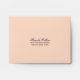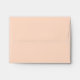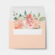 This pastel peach envelope is specially designed to send out with your wedding RSVP response cards. It includes a text template to personalise with your return address and matches the colours of the wedding invitation suite. Having these envelopes pre-addressed helps with getting your wedding invitations out with ease.The inside of the envelope has a watercolor floral bouquet of roses and peonies in peach, pink and creamy white with trailing greenery. Note: shown here in A2 size to fit the standard RSVP card, this envelope is also available in other sizes.