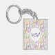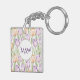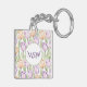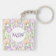 Pastel Peach Purple Tulips Spring Floral Monogram Key Ring