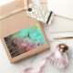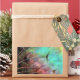 Pastel bubbles of aqua, turquoise, blue and pink and purple are a backdrop for these wispy peacock feathers