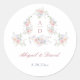 Pastel Peonies Frame Wedding Monograms Classic Round Sticker