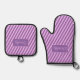 Pastel Personalised Pink and Lavender Striped Oven Mitt & Pot Holder Set