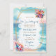Elegant pastel coastal themed wedding invitations. Soft pastel pink and pale blue water with accents of starfish, seashells, seahorses and tropical flowers. Watercolor beach wedding theme.