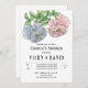 Peony blossoms in pastel pink and blue wedding couple’s shower invitation. It displays peonies in rose quartz and serenity blue colours in watercolor Chinese vintage style.