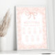 Explore sophistication with our elegant preppy baby girl shower seating chart sign poster, adorned with a charming pastel pink bow ribbon set against a backdrop of classic damask pattern. Perfect for welcoming guests to your celebration with style and refinement.