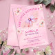 Cute and whimsical pink butterfly birthday party invitation for your little girl's first birthday.
