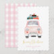 Pastel Pink Car Farmhouse Check Merry Christmas Holiday Card.