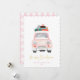 Pastel Pink Car Farmhouse Check Merry Christmas Holiday Card