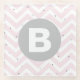 Pastel Pink Chevron and Dots Grey Monogram Glass Coaster