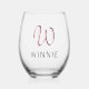 Pastel Pink Elegant Initial Black Name | Modern Stemless Wine Glass