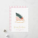 Pastel Pink Farmhouse Plaid Check Christmas Sleigh Holiday Card