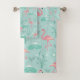 Pastel Pink Flamingos Green Pattern Bath Towel Set