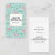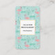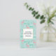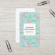 Business cards with a whimsical pattern. Pastel pink flamingos on a light green background. Green lily pads and lotus flowers. Cute tropical vibe.