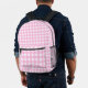 Pastel Pink Gingham Pattern Printed Backpack