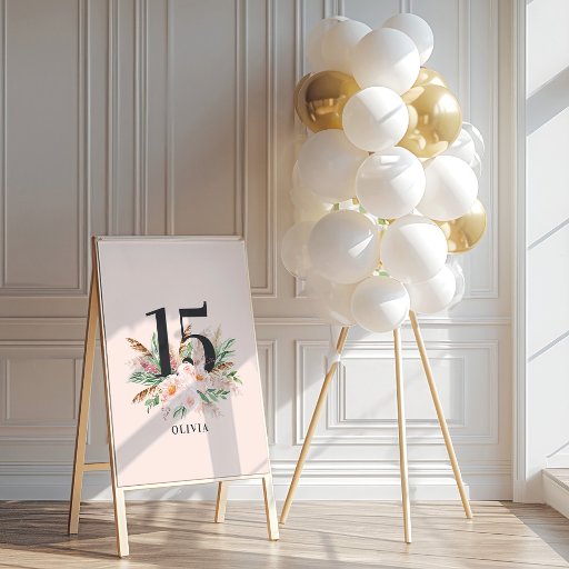 Birthday pink girly floral photo pampas elegantDesigned by Stacy Speakman-Cooke