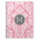 Pastel Pink & Gray Damask Pattern Custom Monogram Spiral Notebook