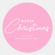 Pastel Pink Merry Christmas Script Name Classic Round Sticker