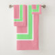 Pastel Pink Mint Green Block Pattern Bath Towel Set