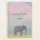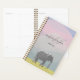 Silver Elephant and Pastel watercolor colourful aquarelle background. Beautiful, modern monogrammed planner with custom name.