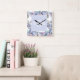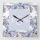 Pastel Pink Purple Dusty Blue Floral Monogram Square Wall Clock