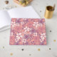 This guest book features flowers and leaves in pastel shades of pink and purple on a pink background.