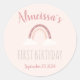 Pastel Pink Rainbow and Clouds First Birthday Classic Round Sticker