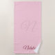 Pastel pink solid colour monogrammed beach towel