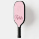 Pastel pink solid colour monogrammed Pickleball paddle from the store of lumirala /personalise it now with her name and monogram .