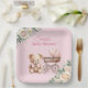 Pastel Pink Teddy Bear Baby Shower Paper Plate
