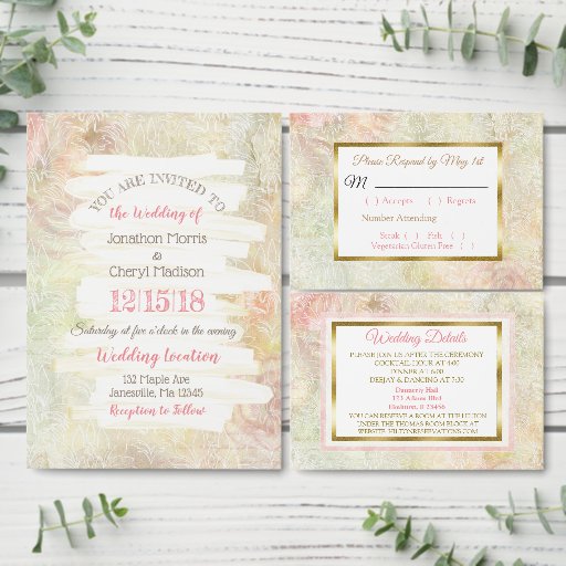 Pastel Pink Vintage Rose Wedding Menu Card