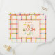 Celebrate your little one turning two with this playful "Two Much Fun" birthday postcard invitation, featuring a soft pastel plaid pattern in pink, peach, mint, and yellow. The cheerful typography and clean layout make it perfect for a fun-filled toddler party. Easily personalise with your child’s name, party date, location, and RSVP details for a truly unique keepsake. Ideal for spring or summer celebrations, this charming invite sets the tone for a bright and joyful day.