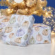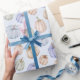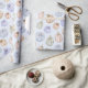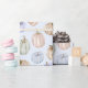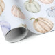 Wrapping paper with pastel pumpkins in blue, green, and tan on a blue background. (Available in pink, green and ivory, too.) MATCHING items in our store.