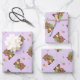 Pastel purple cute brown hedgehog pattern wrapping paper sheet