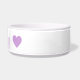 This ceramic dog bowl has two pastel purple hearts and can be personalised with your dog's name. Choose any font style and colour that you prefer instead of the purple shown here. You can move the hearts around and adjust their size also to make this dog dish just right for your dog. Makes a unique and fun gift for any dog parent!