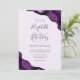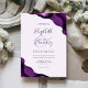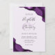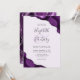 A purple watercolor agate design trimmed with faux silver glitter appears in two corners of this elegant design. Personalise it with the couple's names in charcoal grey handwriting script over a large, pale purple ampersand. Add the wedding details in copperplate and italic fonts on a pastel lavender purple background. The reverse side features a matching purple and silver agate design.