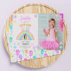 This pastel rainbow birthday party photo invitation features a rainbow frosting birthday cake with candles on top. On the right is a large space to add your pwn photo. This invitation has pastel rainbow stars as a border. On the back is a fun pattern made of rainbow balloons. Customise the text to suit your occassion. See the whole matching collection.